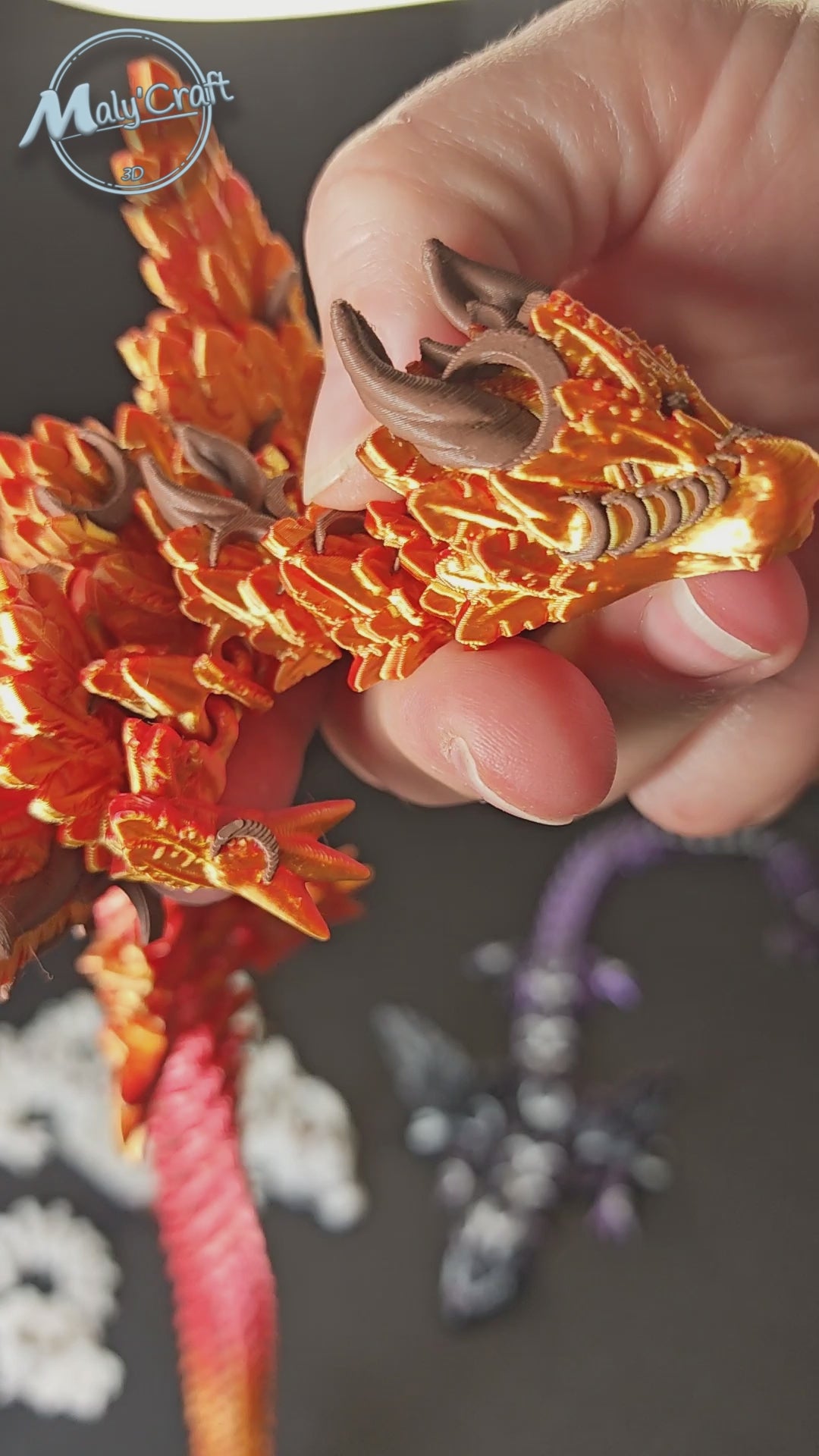 Découvrez le Dragon Lunar Wings, une création majestueuse issue de la collection officielle Cinderwing3D. Cette figurine articulée de 36,5 cm se distingue par ses détails lunaires gravés sur ses ailes et son corps. Idéal pour les collectionneurs de créatures fantastiques, les amateurs de design d'intérieur ou comme objet déstressant (Fidget Toy) pour adultes.