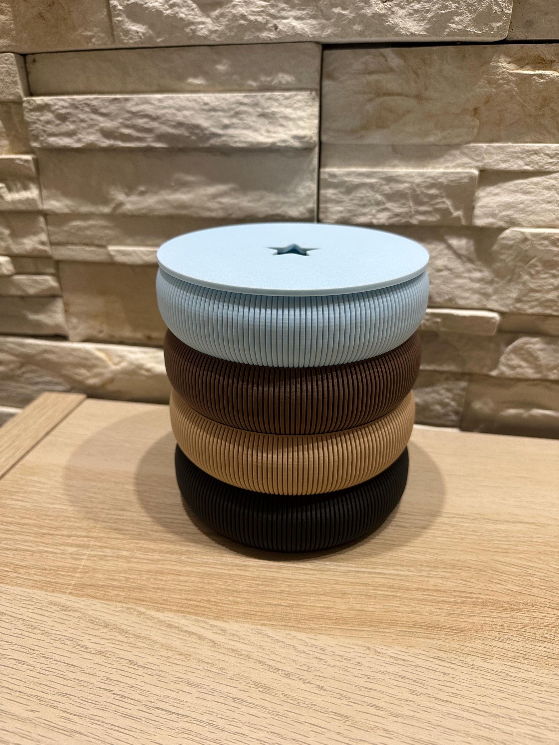 Imprimée en 3D dans mon atelier en France, chaque boîte est réalisée avec des filaments de qualité. Son couvercle étoilé et sa conception empilable permettent d’agrandir votre rangement facilement sans encombrer votre espace.