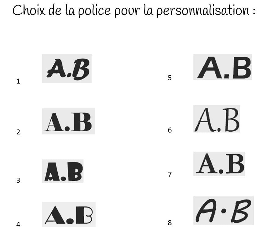 Ajoutez dans le champs personnalisation le texte et le numéro de police choisi